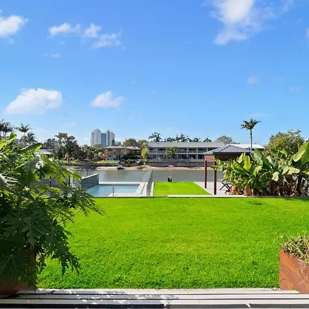 A 3 hálószobás 4 Bedroom Fabulous Home On Canal Mooloolaba Mooloolaba egy lakó övezetében található, és a vendégeknek lehetőséget kínál a lazításhoz az úszómedencénél.